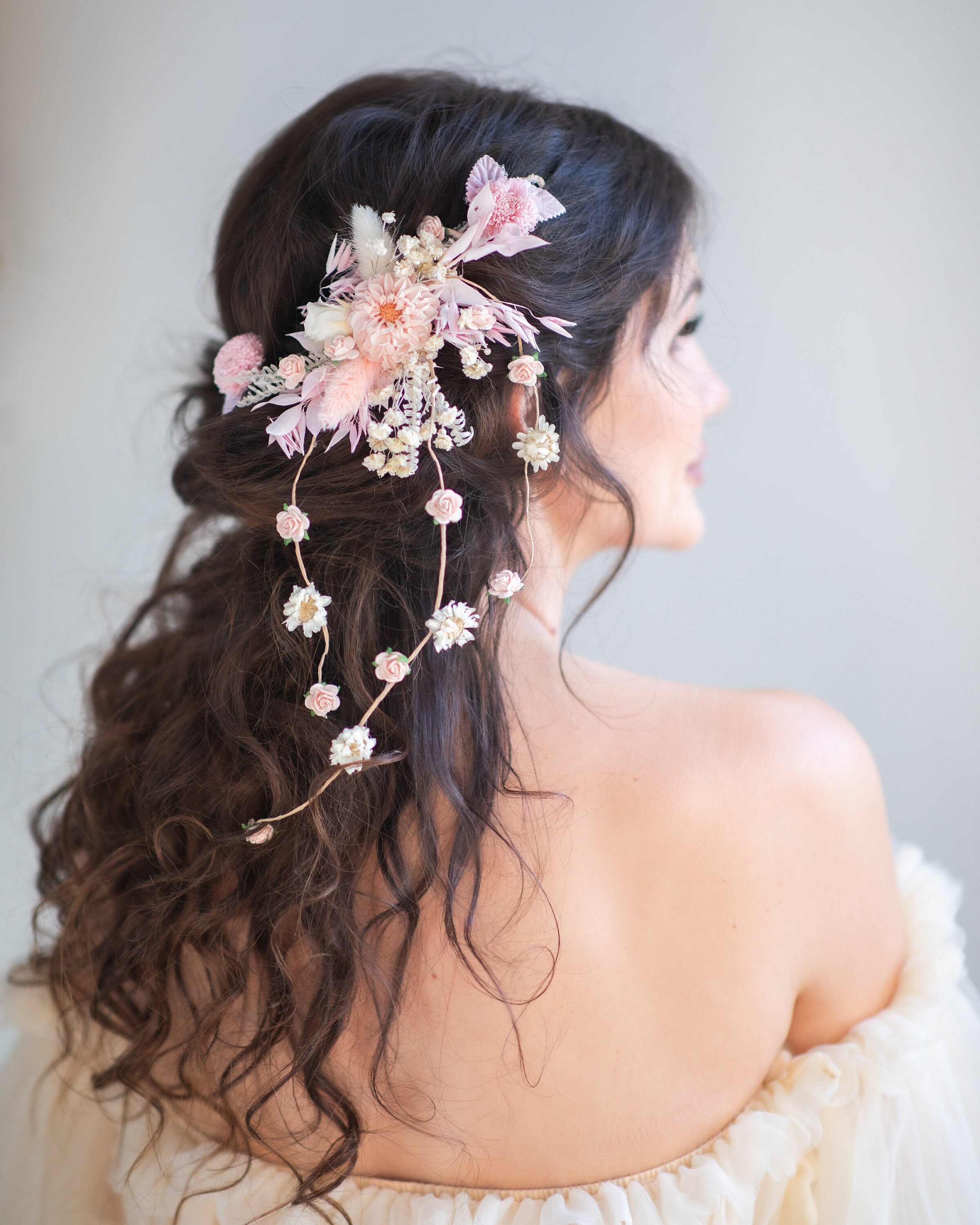 Romantic Flower Hair Vine Blush Bridal Headpiece Pink Wedding Etsy Uk